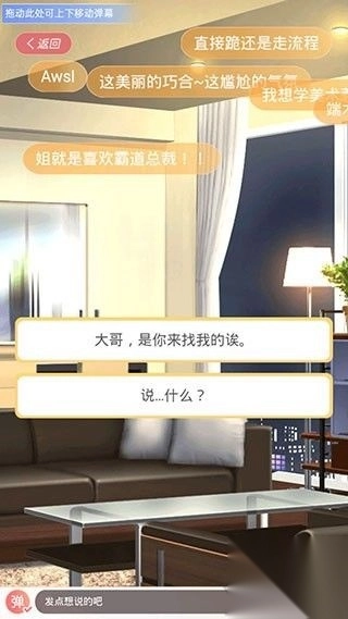 3、故事通过对话与选择相结合的形式推进,用户可在下方输入弹幕,进一步增强互动体验。
