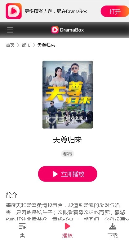 《DramaBox短剧平台》是一款超好用的海外短剧APP,在这里,用户能找到各类优质短剧视频。无论你在抖音或其他软件上看到的短剧,都能在此免费观看全集。平台短剧类型丰富多样,用户可依据自身喜好挑选。喜爱短剧的小伙伴可千万别错过啦!