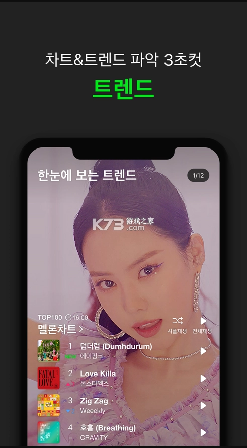 更重要的是,在 melon app 能为爱豆刷音源。所谓刷音源,就是反复用 ID 去听某个歌手的歌或者某首歌,这样能助力歌手提升排名。因为在 melon 平台会定时依据音乐质量重新排名,而且音源在每周评分中占比 30%,其重要性不言而喻。欢迎有需求的用户免费下载体验。坐拥海量正版音乐资源。此平台着重为用户供应IU(李知恩)、金钟国、洪真英、李俊昊、泫雅、金泰妍等众多韩国歌手的歌曲,要知道,部分新歌在中国尚无版权。要是你钟情韩国歌曲,不妨尝试这款软件。此外,该平台支持用户通过输入歌名、专辑名、歌手姓名等信息,搜索查找自己心仪的资源,还能在线选择音质试听以及观看MV 。要是你喜欢某首歌曲,还能将其添加至个人收藏或播放列表,十分实用。
