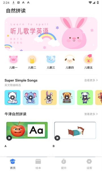 2. 海量学习资料一应俱全,涵盖视频、儿歌、词汇等,让英语学习内容更充实。