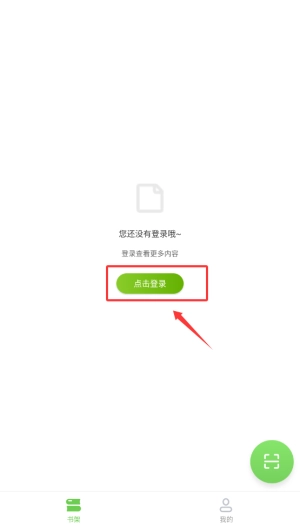 1、启动扫好书APP后,系统会在首页弹出登录提示,点击"点击登录"按钮进入验证页面。