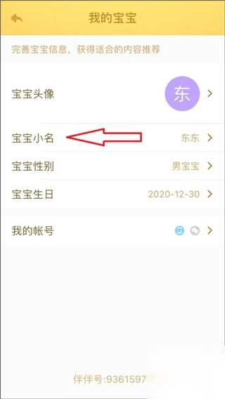 2、点击页面中的【宝宝小名】