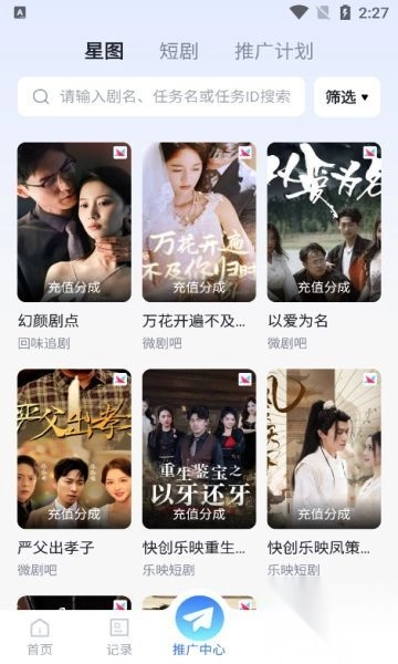 1、短剧的受众的群体广泛,大家可以任意做推广,并且可以获得佣金;