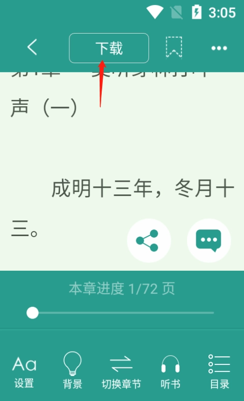 这个问题问偶就对啦,阅读页点击章节内容的中间部分,点击下方的灯泡图标,在此页面可调整页面亮度、背景颜色、切换夜间模式,其中Android版本提供亮度跟随系统以及背景字体颜色的自定义设置,其中默认的配色为【水绿】。