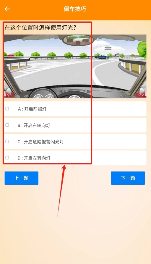 2、其一为倒车技巧答题,该方式聚焦于倒车相关知识展开考查,助力提升倒车技能。
