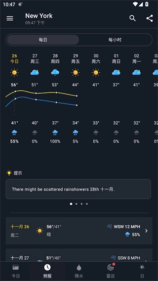 3、可按每日、每小时、每周等不同方式查看气象情况,提供更为多元的查看途径。
