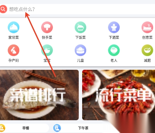1、用户可以直接进入首页,在搜索栏输入你想要的菜谱。