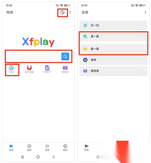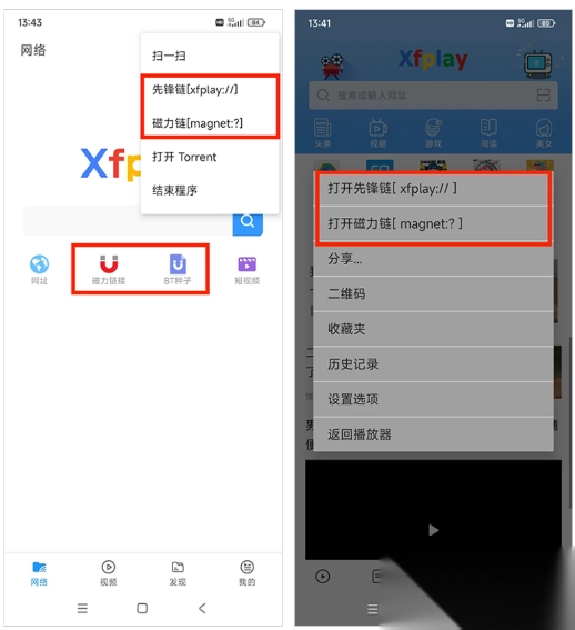 (1) 方式一:打开首页右上角列表中的【先锋链】或【磁力链】;方式二:点击导航栏图标,接着在浏览器顶部搜索框输入先锋链(xfplay://)、magnet uri链接、BT torrent种子等内容。
