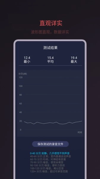 2、专业手机分贝测试,高精准度噪音检测;