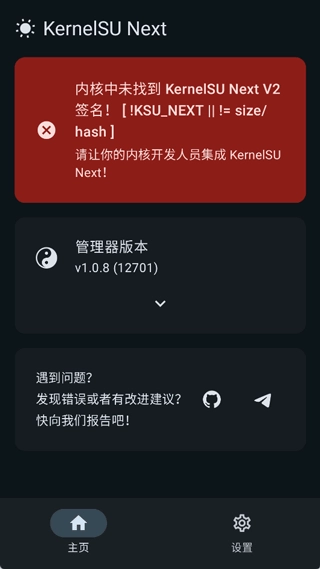 3、刷入成功后,用户再次打开KernelSU Next,就不会出现如下图所示的红色区域了,代表你也刷入成功,可以使用更多功能了