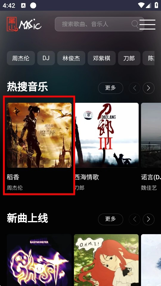 2、进入首页,浏览海量音乐资源,按歌手及歌曲类型分类