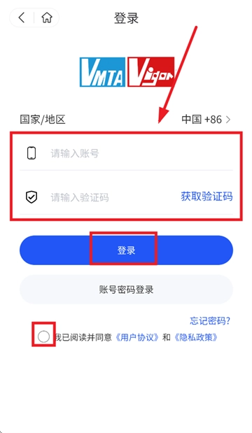 请输入账号及验证码,勾选“我已阅读并同意《用户协议》和《隐私政策》”,随后点击“登录”按钮即可。