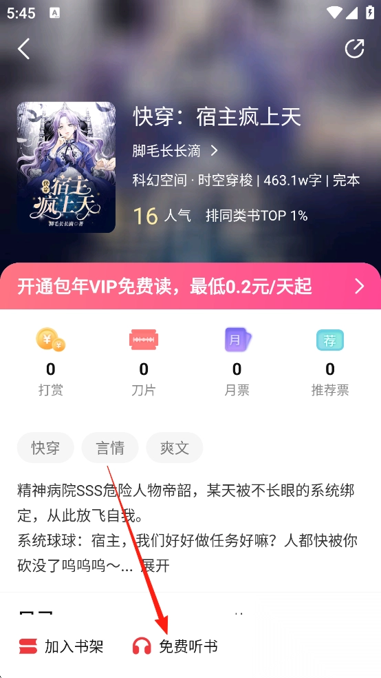 2. 点击书籍,紧接着直接点击【免费听书】