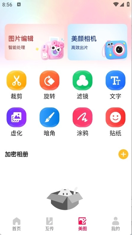 2、底部导航栏汇聚丰富工具资源,包括扫描识别、文件互传、美图编辑等多种功能。
