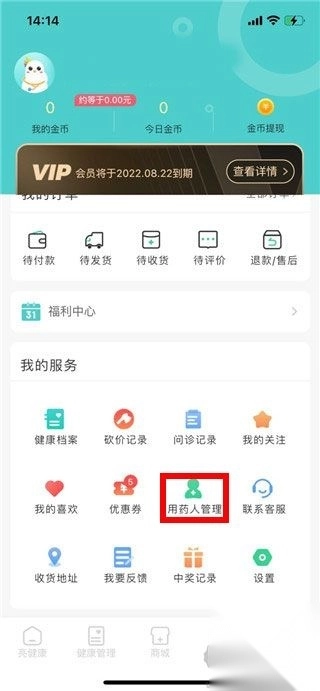 2、点击【用药人管理】。