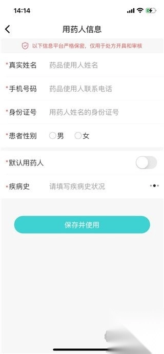 4、在这里输入真实信息后点击【保存并使用】即可。