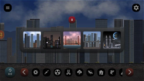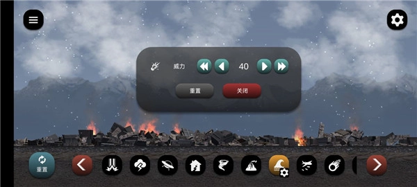 1. 开启失控城市模拟器后,在界面下方能够针对城市选择行动,例如放烟花或者投放炸弹。再次点击相同行动,就能更改威力大小或者关闭该行动。