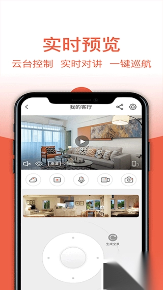 5、【云台控制】通过手机APP,可轻松对摄像头方向进行左右旋转、上下调节的操作,实现全方位无盲区监控。