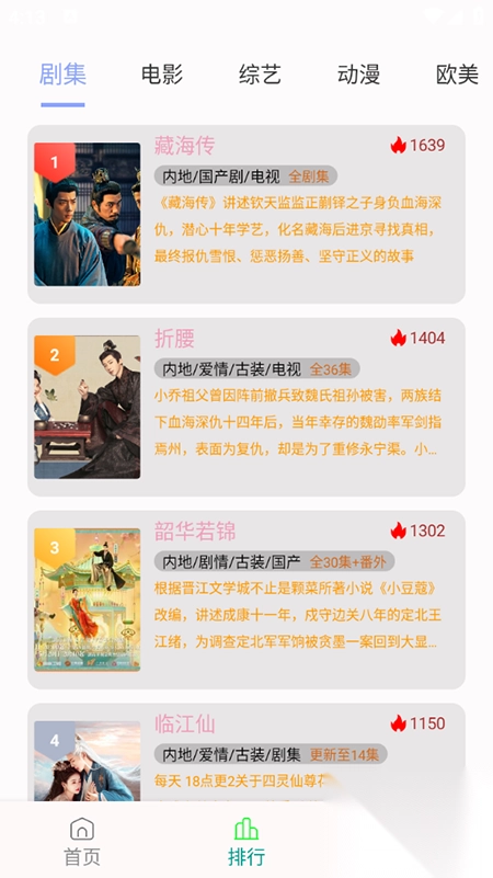 2、点击“排行”标签,可查看热门影视资源的排行。