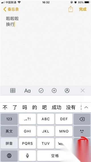 方法一:苹果手机在打字界面键盘没有换行键,可以使用空格来换行。