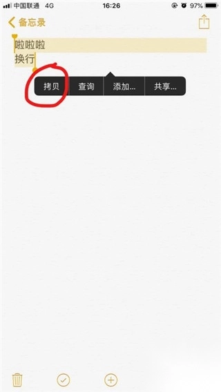 1. 第一步,打开手机自带的备忘录。该备忘录的键盘具备换行功能,接着在其中输入需要录入的文字。