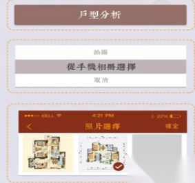 1、户型分析,从手机相册选择或拍摄获取户型的图片。