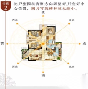 2. 将户型图依据实际方向调整到位,确定好中心位置,同时图片支持选择、放大与缩小操作。