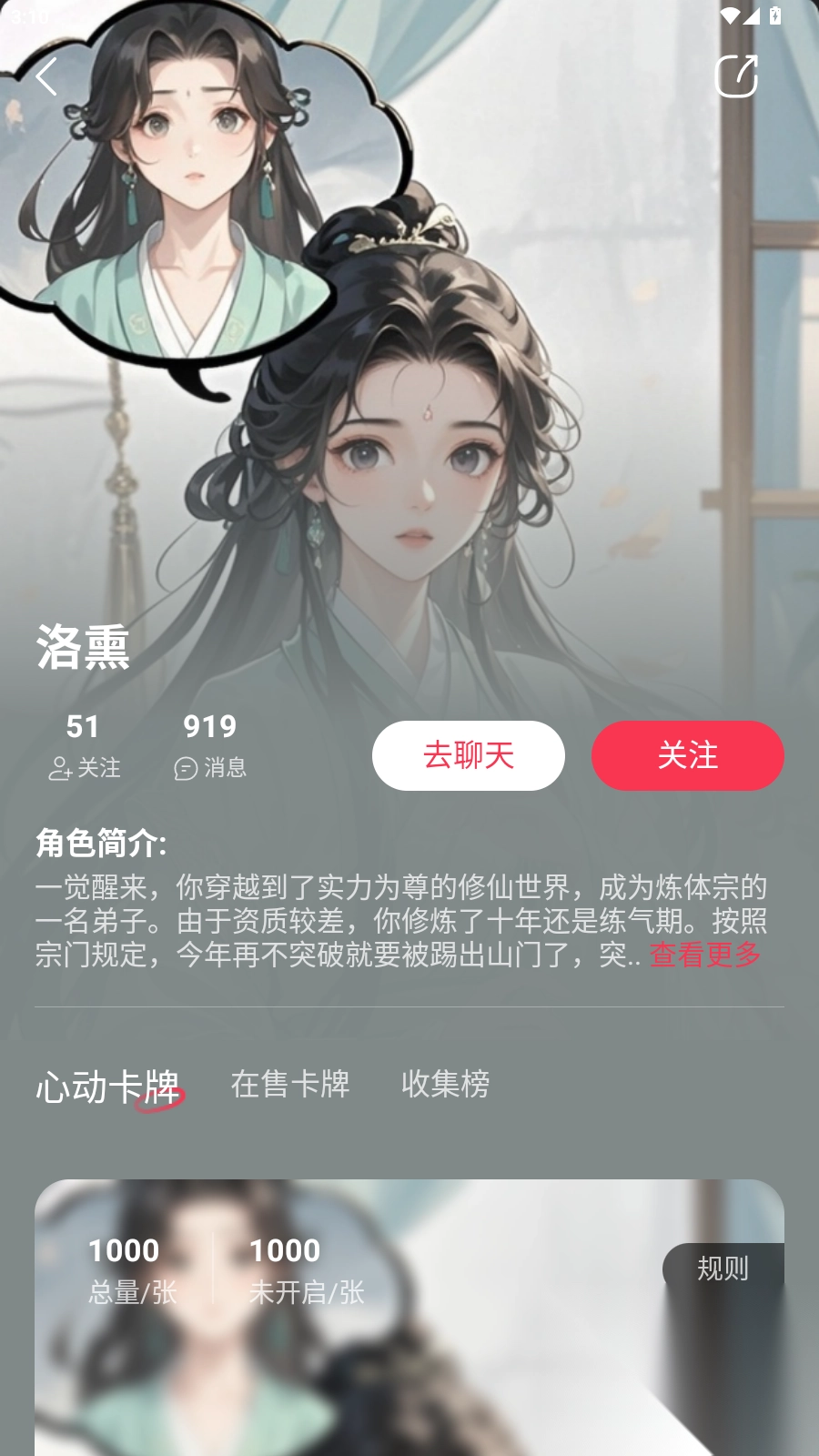 2、进入人物详情页面,点击去聊天