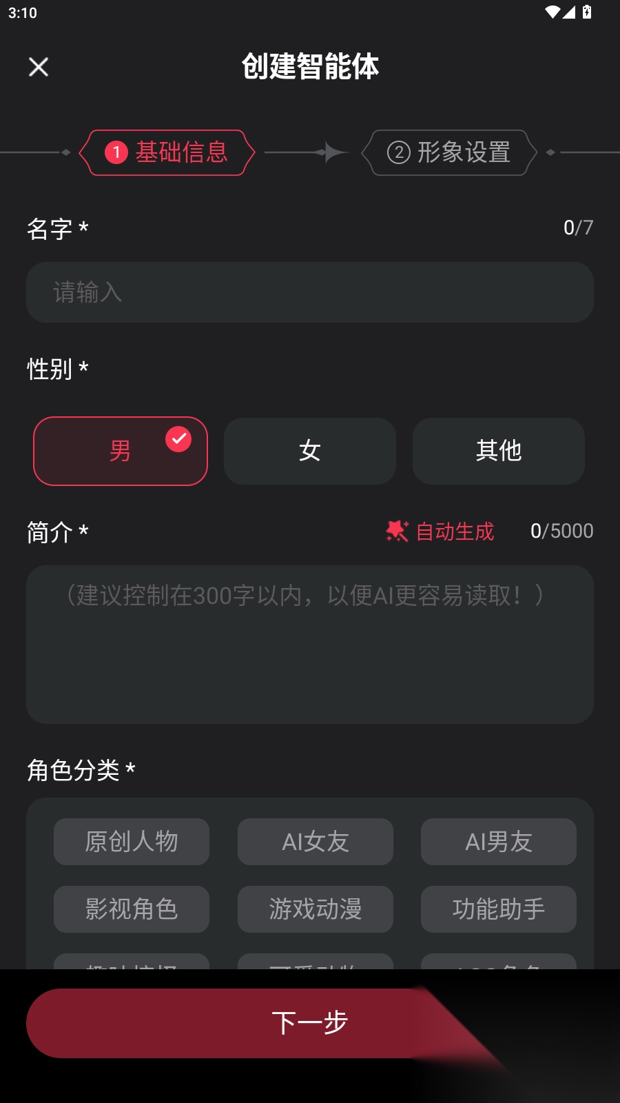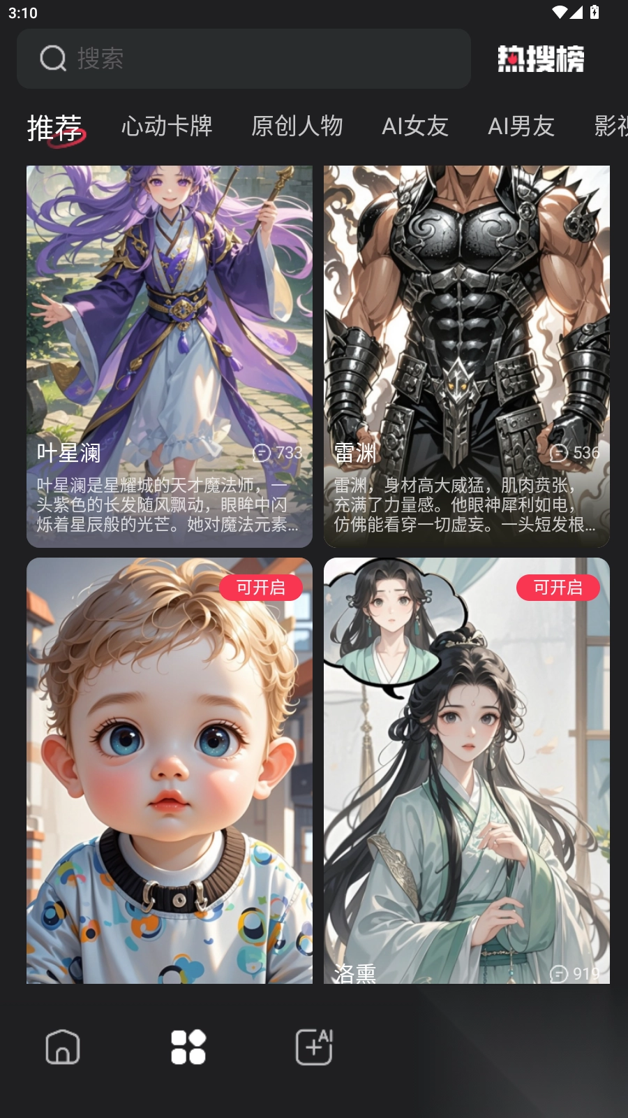 1、打开进入首页,选择自己喜欢的聊天角色