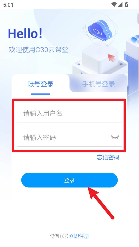 1、打开应用后,选择“账号登录”或“手机号登录”。