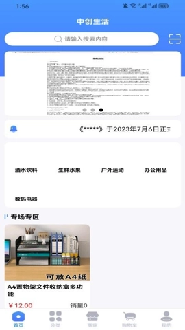 1、无论用户是想买新鲜水果,还是需要办公用品,都能在中创生活分类里快速找到所需物品。