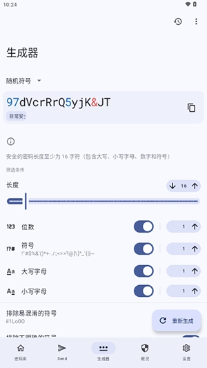2. 自动生成密码:可生成高强度密码,同时支持对字符集和长度进行自定义设置。