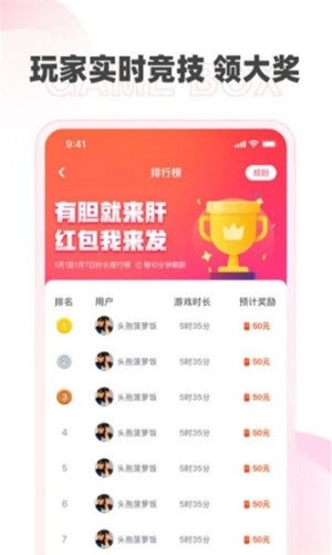 1、每日红包福利来袭,只要玩游戏就能天天领取红包。还有排行榜玩法,通过玩游戏冲击排名,人人都有机会领取高额奖励。