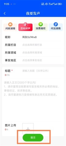 3、选择留言的平台(百姓呼声、问政湖南、消费维权、问法湖南)。