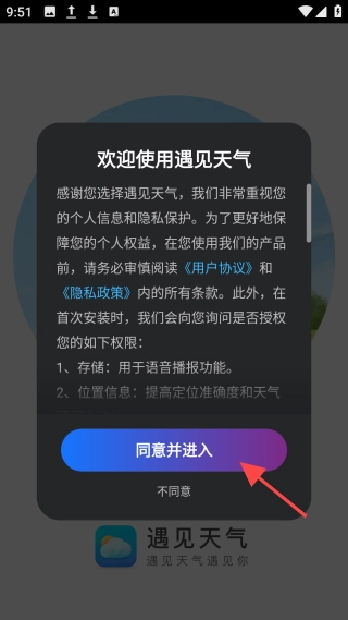 1、下载安装后,点击【同意并进入】按钮,跳过欢迎海报。