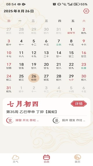 3、在日历页面,我们能看到每一天日历信息,超级精准。