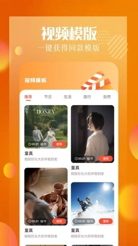 2. 海量风格化模板供应,旅行、日常等场景皆适配,一键套用就能快速产出大片,素材拼接、配乐、节奏卡点轻松搞定。