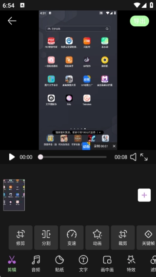 2、于视频剪辑时,将手机里的一段视频导入,接着进入剪辑页面,对各类功能展开操作。