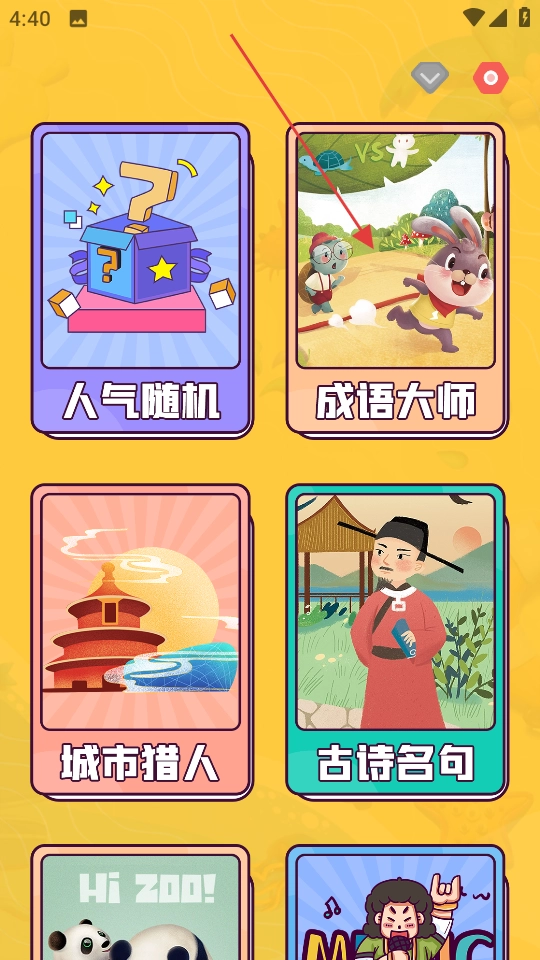 1、在首页点击成语大师,进入该游戏模式。