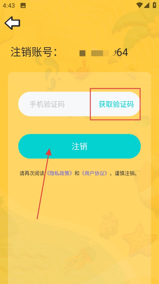 3、在注销页获取验证码,填入后点击注销完成操作。