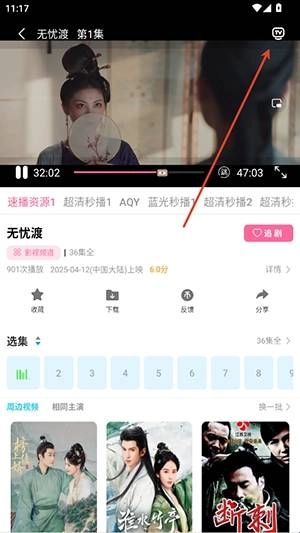 2. 在播放页面,点击右上角的“TV”图标来实现投屏操作。