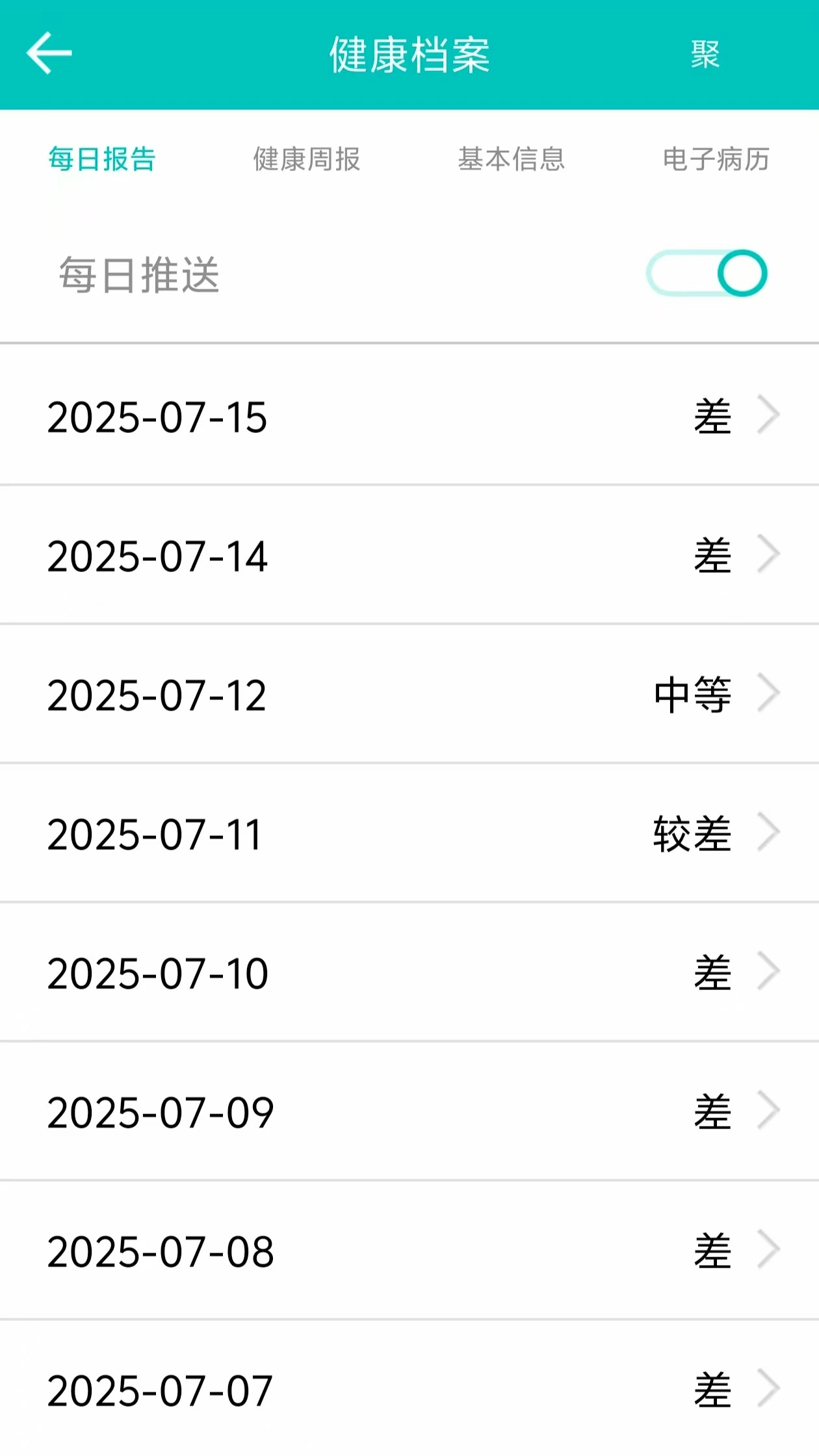 2、一键即可轻松完成电子健康档案,为你提供每日健康报告以及每周健康小结。