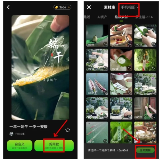 最后点击【立即剪辑】,一条优质的节日视频就做好了