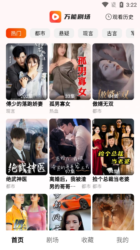 万能剧场,堪称一款简洁至极的免费看剧观影神器。它精心为用户梳理了各类经典电影、热门剧集、综艺以及动漫等资源,同时还收纳了武侠、军事、历史、仙侠等丰富多样影视题材与类别的影视资源。在这里,用户能够自由挑选查看,随时随地免费获取精彩纷呈的电影和电视剧,畅享自由免费看剧观影的乐趣,全方位满足所有追剧需求。不仅如此,万能剧场还具备个性化的影视推荐功能,轻松在线推送各类精彩且备受欢迎的影视剧,为用户下次继续看剧观影提供便利。感兴趣的用户,欢迎下载体验。