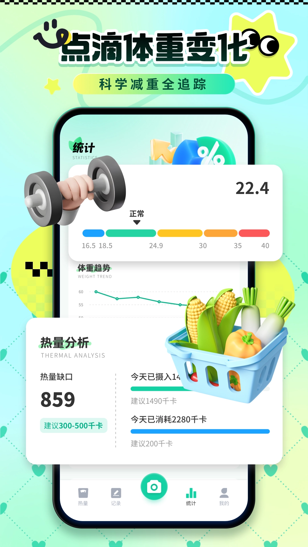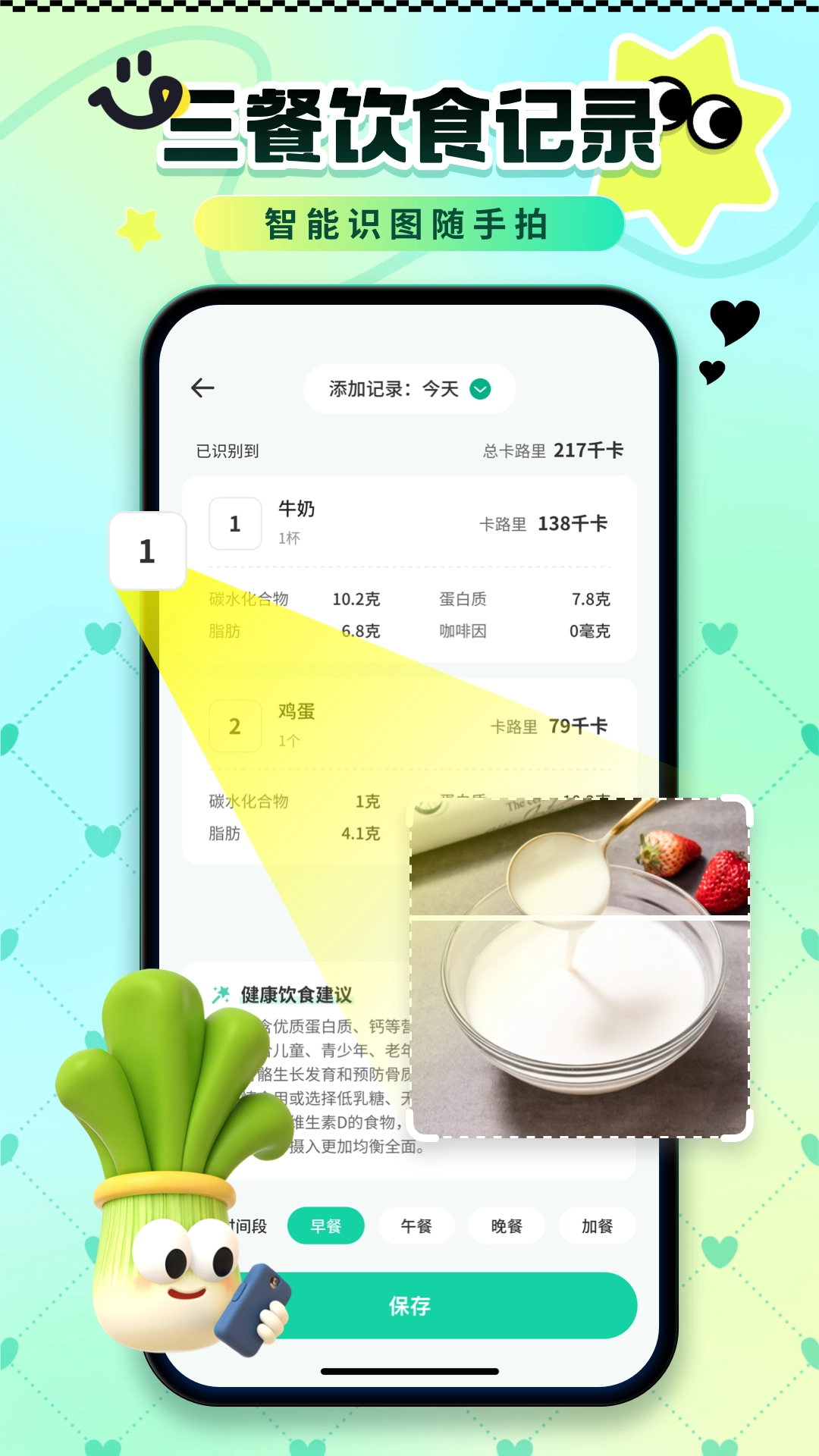 1. 借助拍照识别功能知晓美食卡路里,一键就能记录每餐热量,让饮食管理变得轻松简单,彻底告别繁琐的手动输入。
