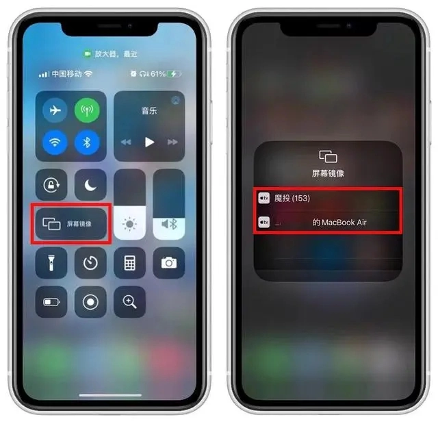 首先打开控制中心,在其中找寻「屏幕镜像」功能,点击该功能后便会开始搜索周边设备,一旦找到设备,就能直接进行投屏操作。