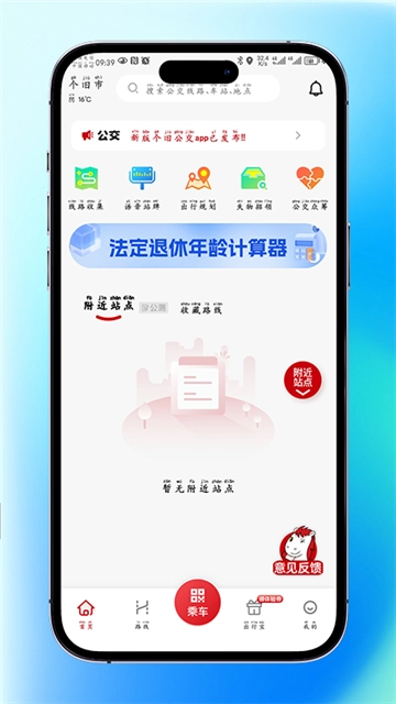 为乘客提供以下服务功能:附近站点与线路信息、实时公交查询、行程规划指引、最新路线调整资讯、一键快速刷码乘车,以及客服咨询。