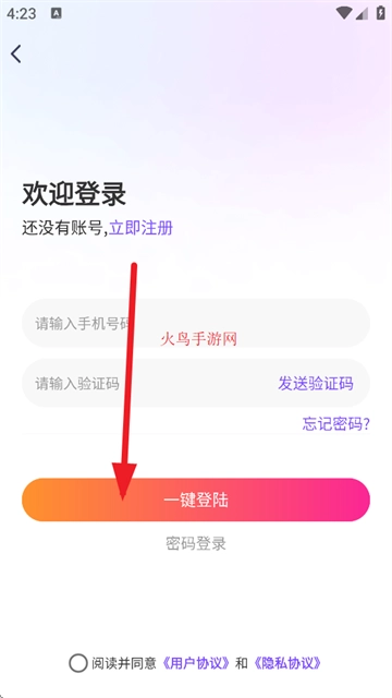 输入手机号码,等待验证码收到后,填入验证码即可登录