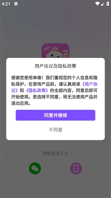 在本站下载单缘app,打开,同意用户协议