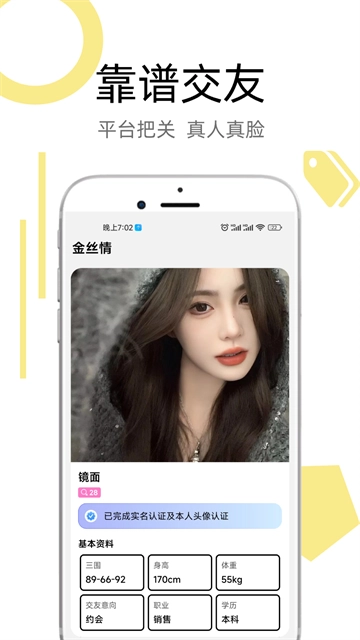 【真实可靠】无需担忧聊天对象是机器人回复!在金丝情平台,用户需历经系统与人工的双重严格审核,目前已有超九成用户成功通过真人认证。